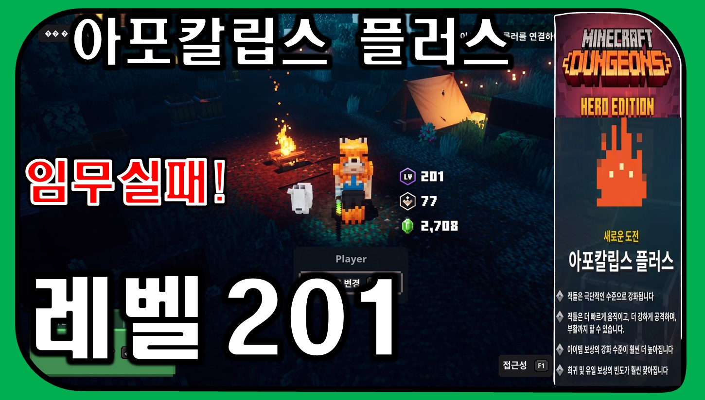 레벨201 - 임무실패 - 마인크래프트 던전스 ( Minecraft Dungeons ) 아포칼립스 플러스