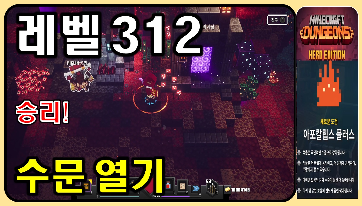 레벨312 - 마인크래프트 던전스 - 아포칼립스 플러스 - 수문열기