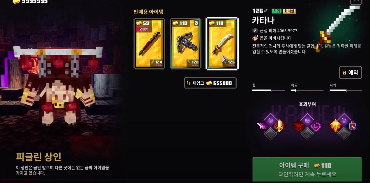 마인크래프트 던전스 - 피글린상인 - 전설무기