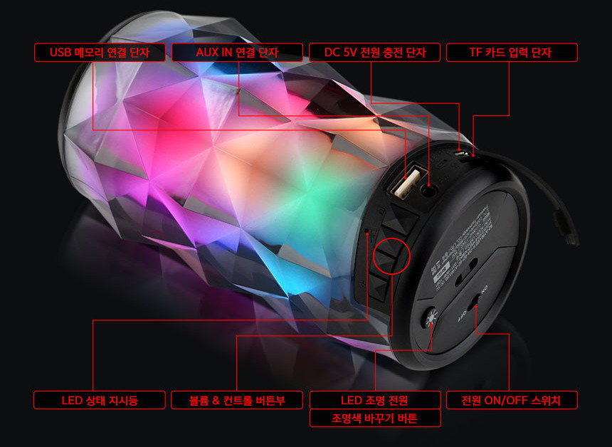[ 신제품 ] 360도 ALL LED 크리스탈 스피커 BZ-A190 라이팅